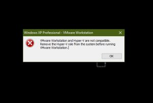 Khi bấm mở máy ảo trong VMware thì nhận được thông báo lỗi “VMware Workstation and Hyper-V are not compatible. Remove the Hyper-V role from the system before running VMware Workstation” (xem hình 1). Và tất nhiên không thể bật được máy ảo lên rồi.