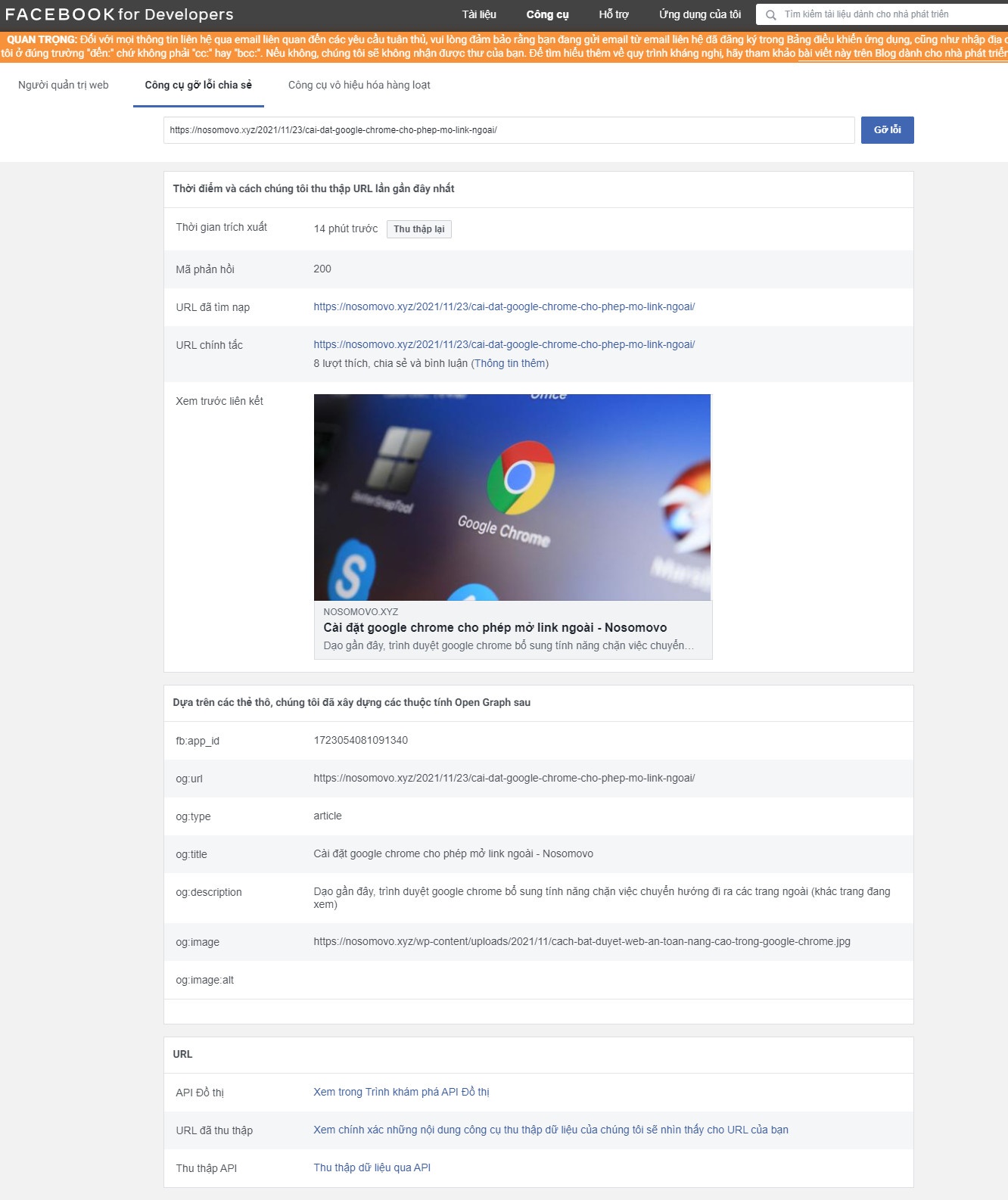 Sau đó, kết quả gỡ lỗi (debug) link xuất hiện như hình 2 bên dưới, việc của bạn cần làm là kiểm tra xem thông tin nào chưa chính xác thì sửa lại cho đúng nhé.