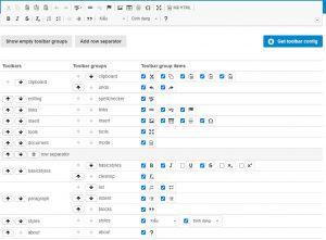 Tuy nhiên, với công cụ CKEditor Toolbar Configurator dưới đây việc cấu hình được thực hiện một cách trực quan trên giao diện. Sau những thao tác lã lướt, code cấu hình sẽ được sinh ra. Việc của chúng ta là chép, dán để sử dụng.